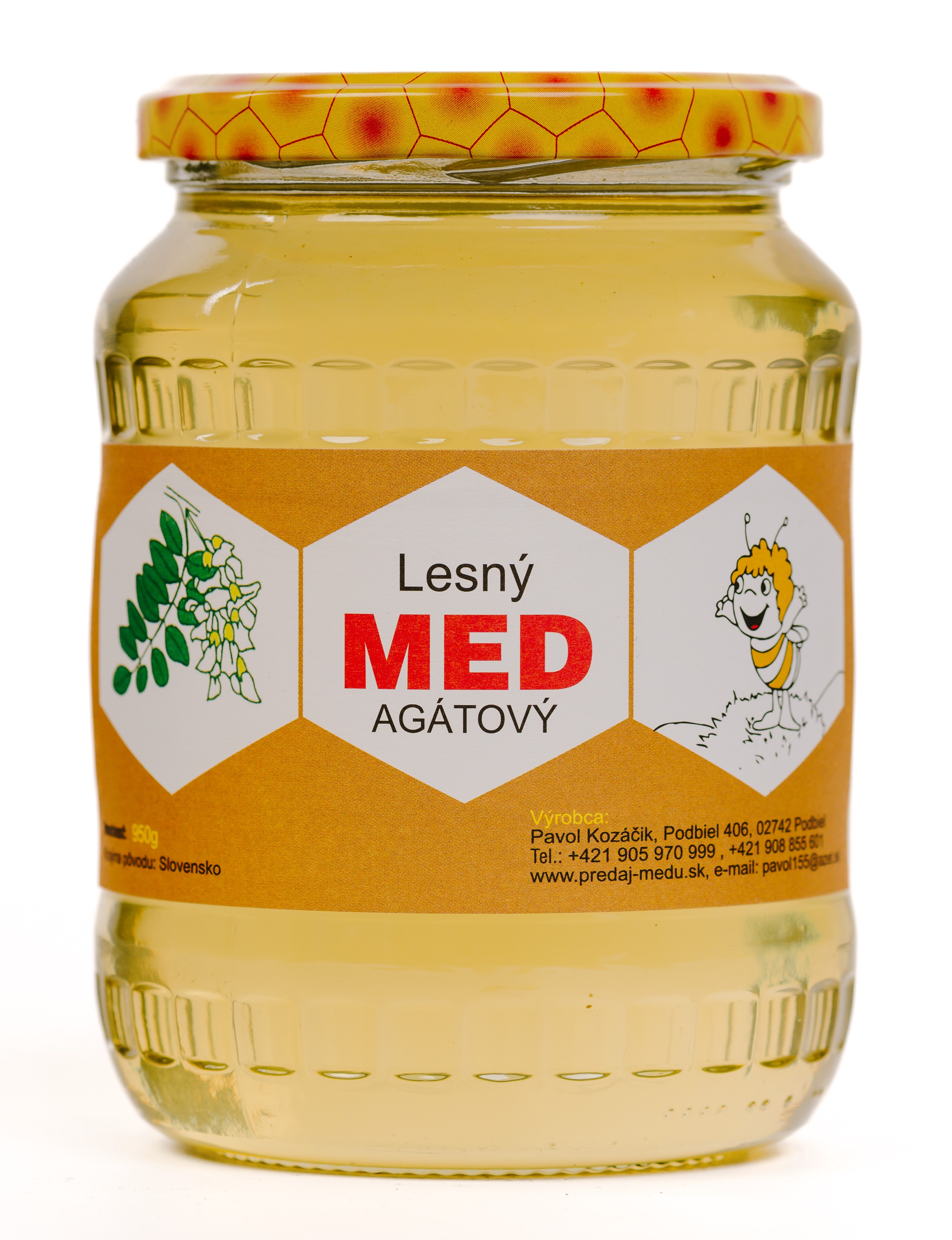 Agátový med je svetlej zlatožltej farby so zelenkavým nádychom. Patrí medzi najsladší med zo všetkých druhov a zároveň je aj najjemnejšej chuti.